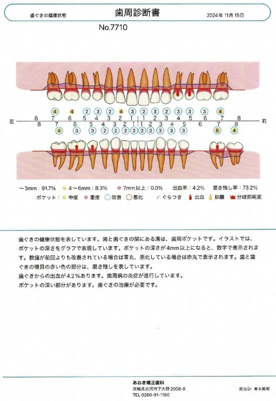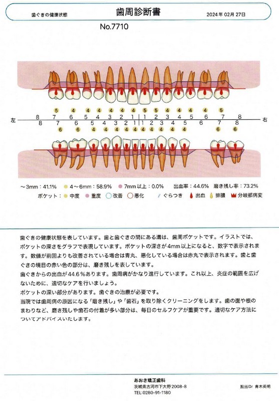 定期メインテナンスの際には精密な歯周ポケット検査を実施し、安定した口腔環境を維持しています。